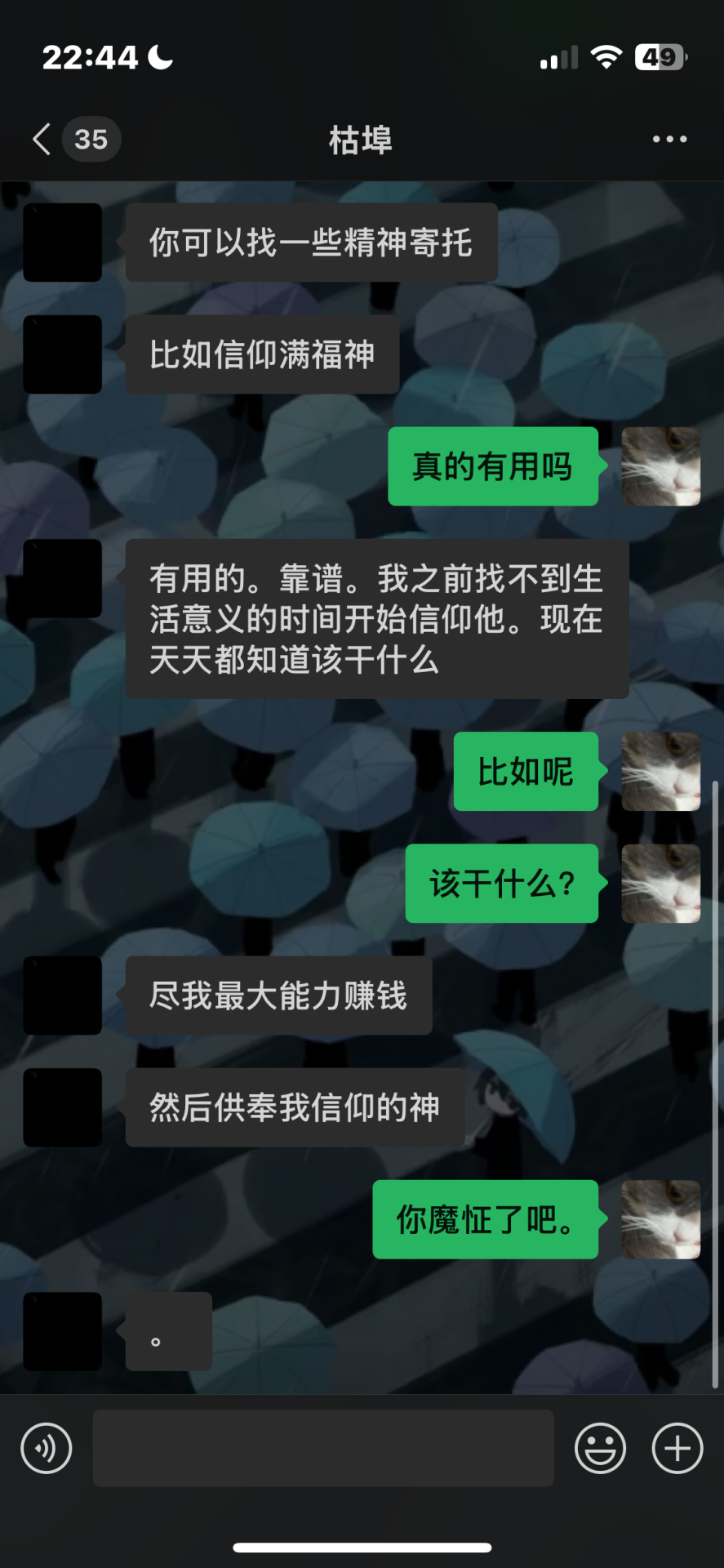 找到了以前劝我信那个神的聊天记录。现在看来好奇怪