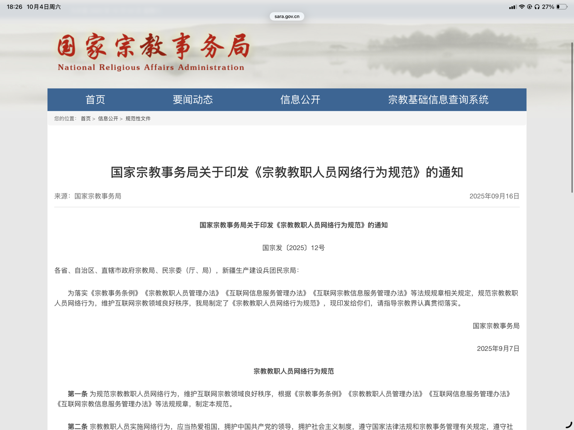 根据国家宗教事务局《宗教教职人员网络行为规范》(国宗发〔2025〕12号)及配套法规,本论坛对涉宗教内容实行分段管理,现将完整规则公告如下: